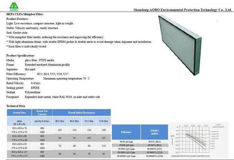H13 Aluminium Foil Seperator HEPA Air Filter