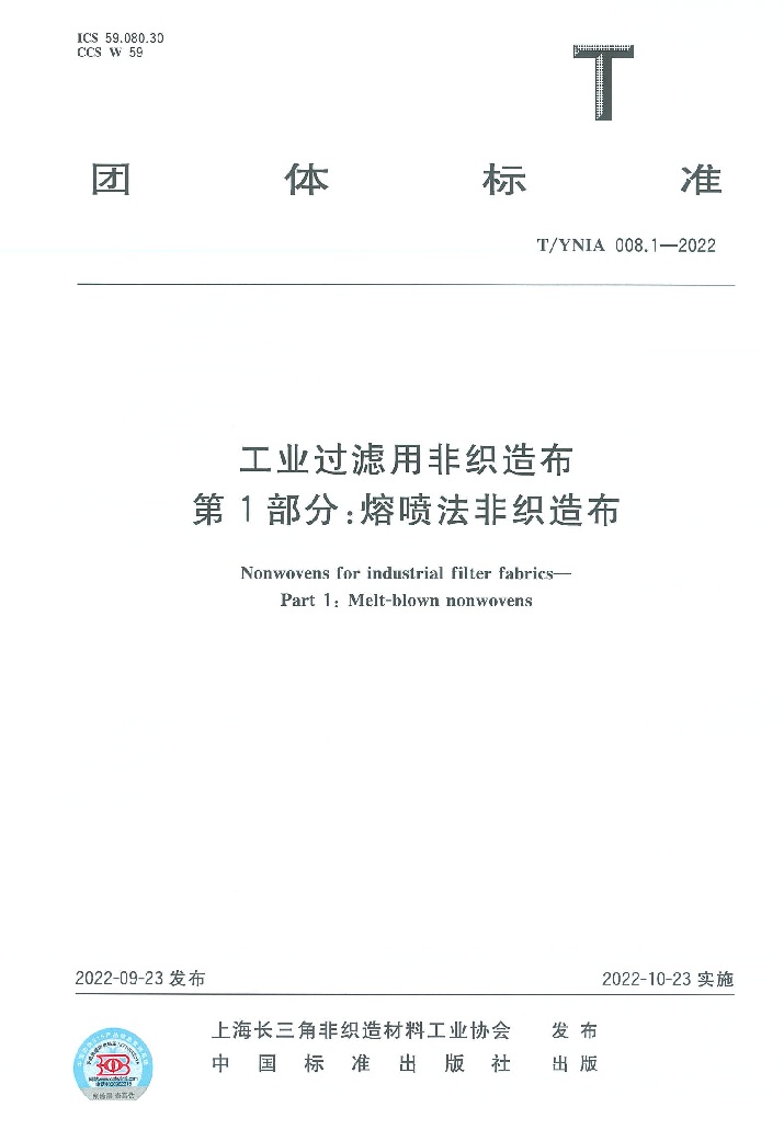 2022年9月23日,T/YNIA 008.1-2022《工業(yè)過濾用非織造布 第一部分 熔噴法非織造布》由上海長三角非織造材料工業(yè)協(xié)會權威發(fā)布,并于2022年10月23日起實施。山東奧博環(huán)??萍加邢薰緸橹饕瓿蓡挝?/span>。
