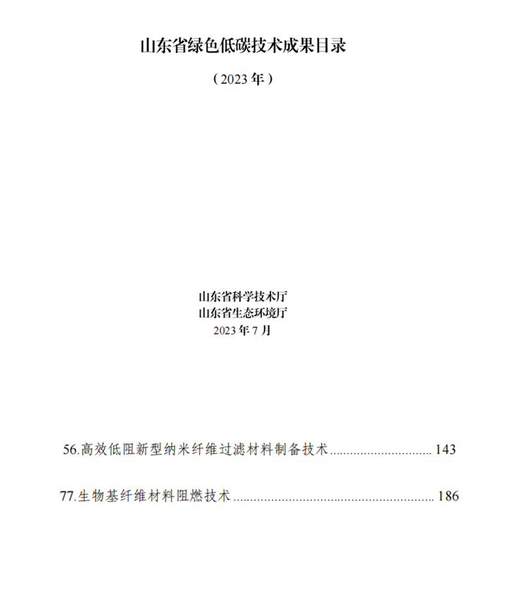 山東省科技廳和山東省生態(tài)環(huán)境廳聯(lián)合發(fā)布《關(guān)于發(fā)布<2023年山東省綠色低碳技術(shù)成果目錄>的通知》,山東奧博環(huán)??萍加邢薰镜?/span>2項技術(shù)成果《高效低阻新型納米纖維過濾材料制備技術(shù)》、《生物基纖維材料阻燃技術(shù)》,成功入選該目錄!為助力可持續(xù)發(fā)展,具有重要意義!